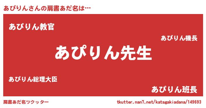 | 意味不明あだ名 | 『永久保存あぴりん』 |