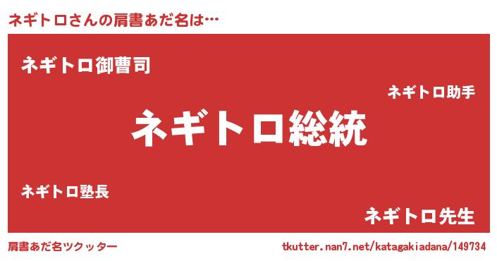 | 男性向けラノベタイトル風あだ名 | 『Re:ネギトロから始める異世界生活』 |