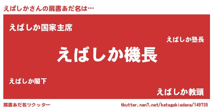 | 意味不明あだ名 | 『えばしかフォーエバー』『自称えばしか』 |