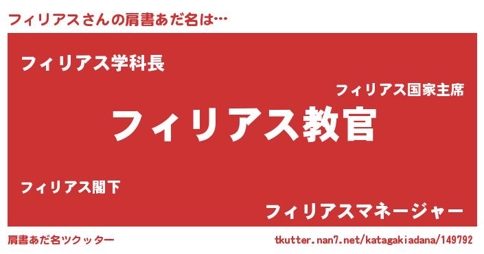 | 男性向けラノベタイトル風あだ名 | 『この素晴らしい世界にフィリアスを!』 |