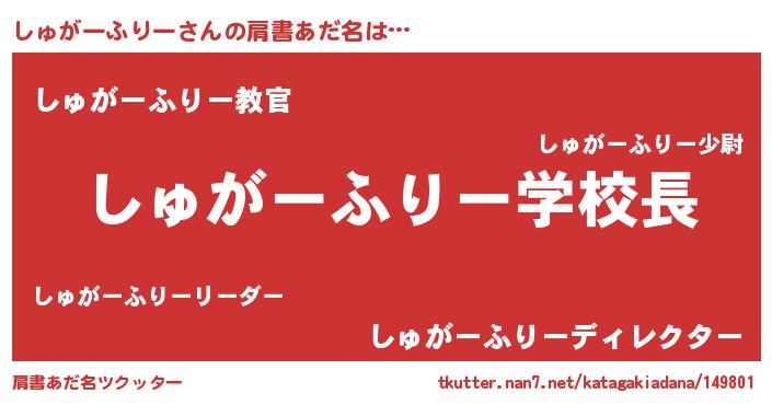 | ヒーロー風カッコイイあだ名 | 『慈愛の使者しゅがーふりー』 |