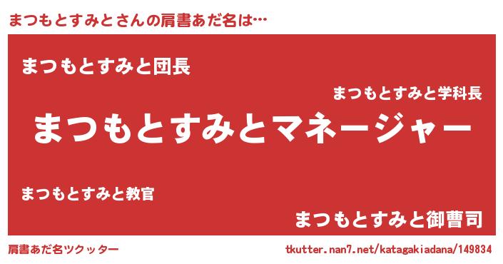 ポケモン風あだ名 | 『マツゴンZ』『ヒマツモトスミト』 |