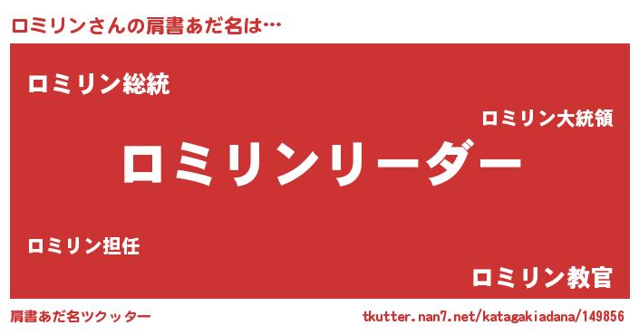| 意味不明あだ名 | 『とにかく怪しいロミリン』 |