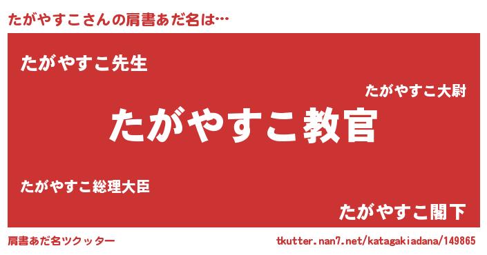 | 意味不明あだ名 | 『住所不定無職たがやすこ(3歳)』 |