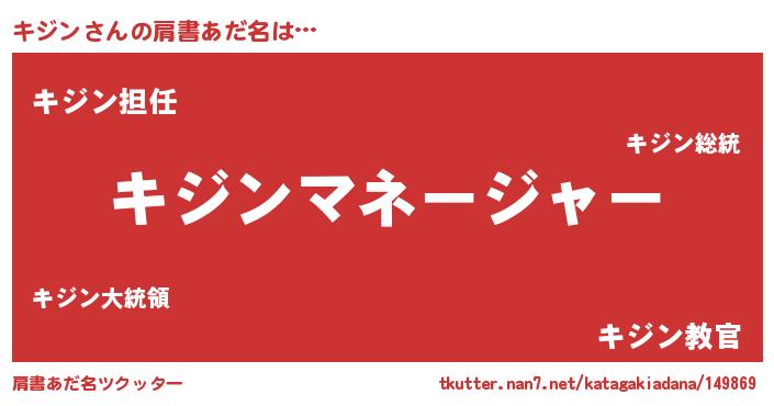 | ポケモン風あだ名 | 『キジゴンZ』『ゼニキジ』『キージイ』 |