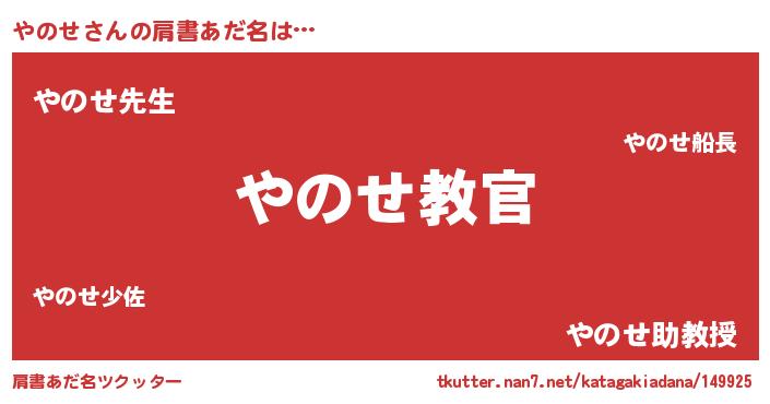 | ヘコむあだ名 | 『やのせ(笑)』『つくし』 |