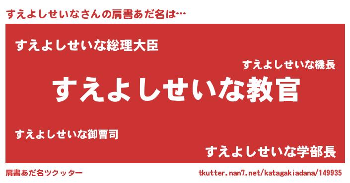 | 男性向けラノベタイトル風あだ名 | 『この素晴らしい世界にすえよしせいなを!』 |