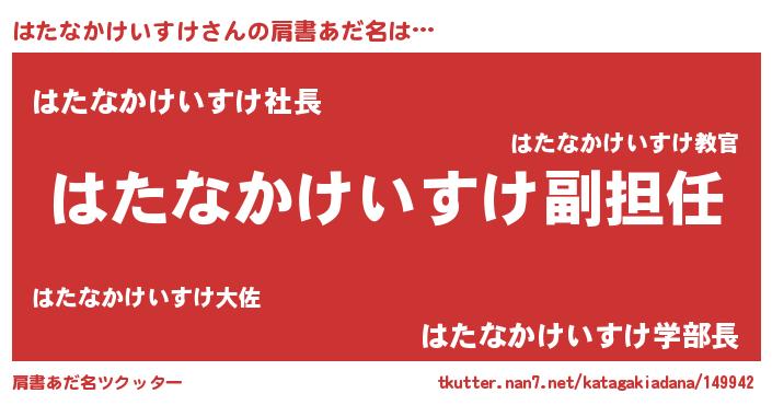 | ヘコむあだ名 | 『はたなかけいすけ(遠い目)』『はたにー』 |