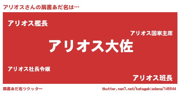 | 女子向けラノベタイトル風あだ名 | 『アリオスの玉の輿計画!』 |
