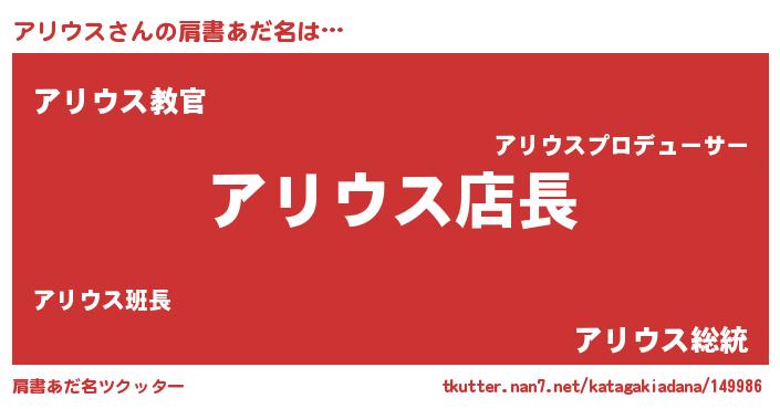 | 男性向けラノベタイトル風あだ名 | 『アリウスの憂鬱』『魔弾の王とアリウス』 |