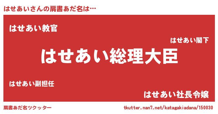 | 2回繰り返すあだ名 | 『ははせせ』『しわしわ』『はせはせ』 |