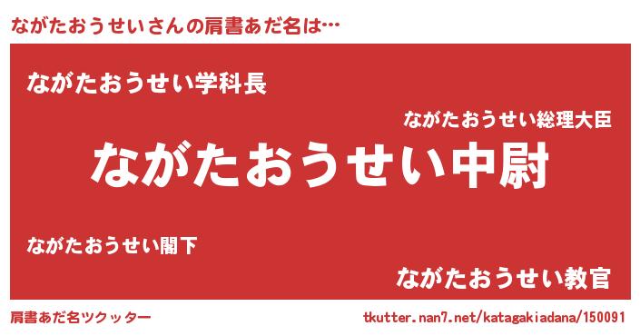 | 男性向けラノベタイトル風あだ名 | 『転生したらながたおうせいだった件』 |