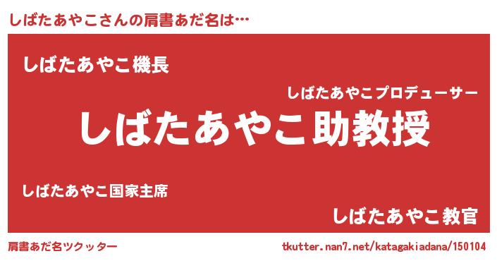 | 男性向けラノベタイトル風あだ名 | 『ノーゲーム・ノーシバタアヤコ』 |