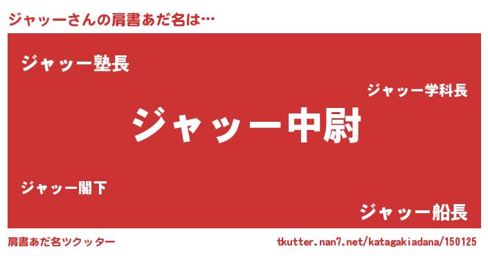 | ヒーロー風カッコイイあだ名 | 『暗黒騎士ジャ』『慈愛の使者ジャッー』 |