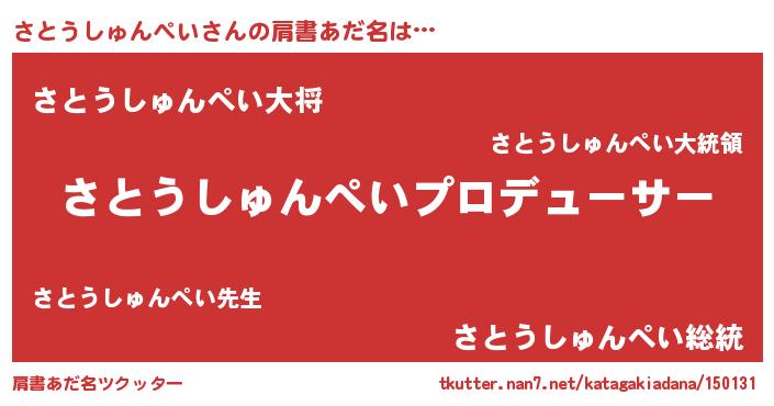 | 恥ずかしいあだ名 | 『サトウシュンペイデラックス』 |