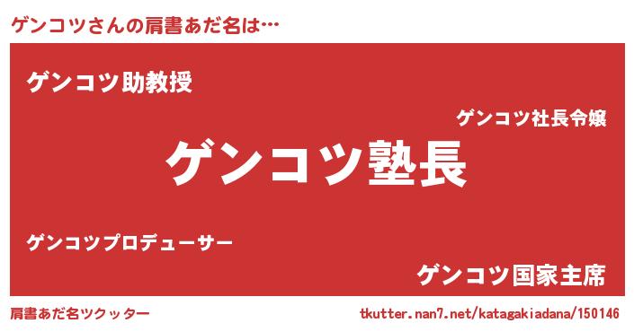 | ヒーロー風カッコイイあだ名 | 『暗黒騎士ゲン』『愛の使者ゲンコツ』 |