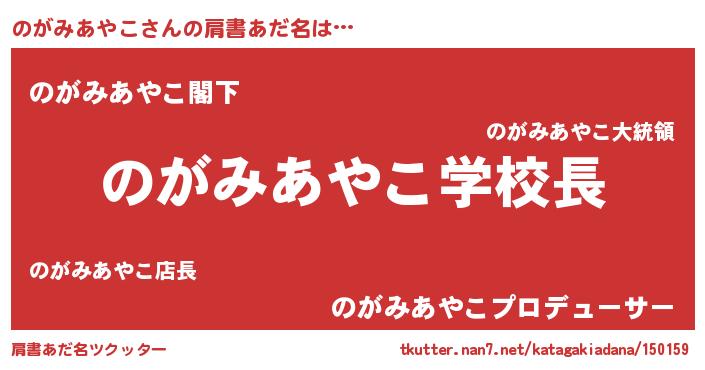 | 男性向けラノベタイトル風あだ名 | 『おまえをオタクにしてやるから、俺をのがみあやこにしてくれ! 』 |