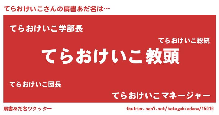 | ヒーロー風カッコイイあだ名 | 『ネオテラオケイコ』『黄金騎士テラ』 |
