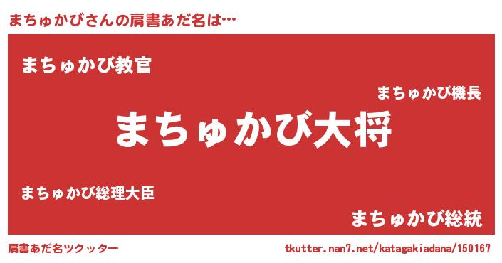 | ヒーロー風カッコイイあだ名 | 『仮面マチダー』『究極戦士マチュカビ』 |