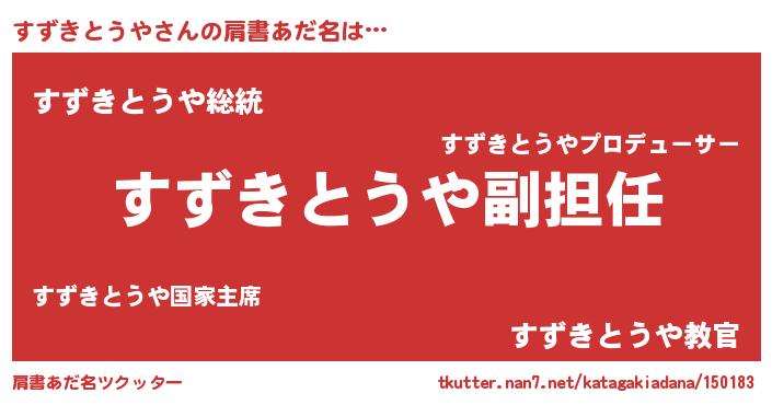 | ヒーロー風カッコイイあだ名 | 『ネオスズキトウヤ』『仮面スズダー』 |