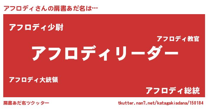 | ヒーロー風カッコイイあだ名 | 『天弓騎士アフ』『最強戦士アフロディ』 |