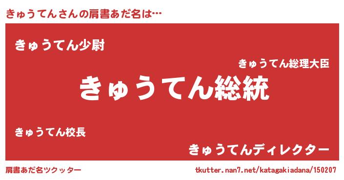 | 意味不明あだ名 | 『自称きゅうてん』『ニラ科きゅうてん属』 |