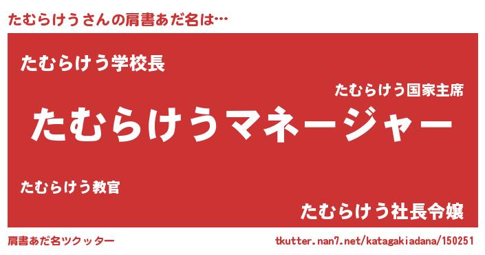 | 男性向けラノベタイトル風あだ名 | 『たむらけうに滅ぼされるだけの簡単なお仕事です』 |