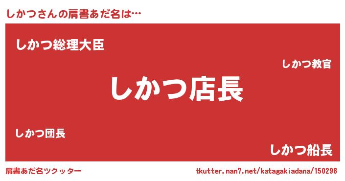 | 男性向けラノベタイトル風あだ名 | 『しかつの憂鬱』 |