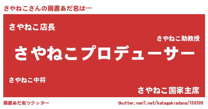 | ファンタジー風あだ名 | 『サヤフェル』『エターナルサヤネコー』 |