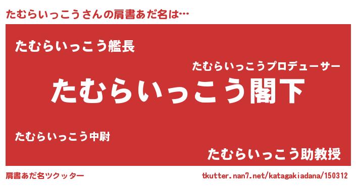 | 男性向けラノベタイトル風あだ名 | 『Re:たむらいっこうから始める異世界生活』 |