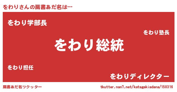 | ヘコむあだ名 | 『をわぷりん』『をわり(遠い目)』 |