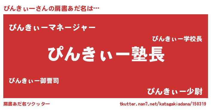 | ヒーロー風カッコイイあだ名 | 『暗黒騎士ピン』『友情の使者ぴんきぃー』 |
