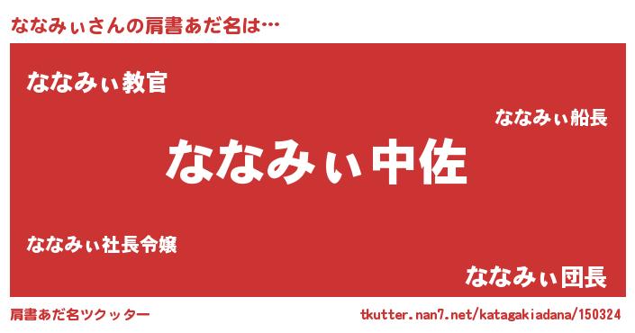 | ヘコむあだ名 | 『ななを』『ななっふぃ~』『豆乳』 |
