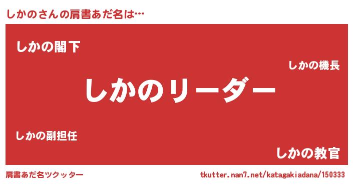 | ヘコむあだ名 | 『しかぷりん』『しかの(笑)』 |