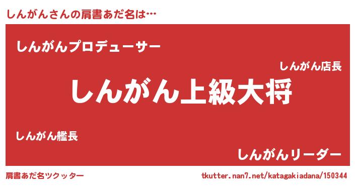 | 男性向けラノベタイトル風あだ名 | 『シンガンスレイヤー』『しんがんの憂鬱』 |
