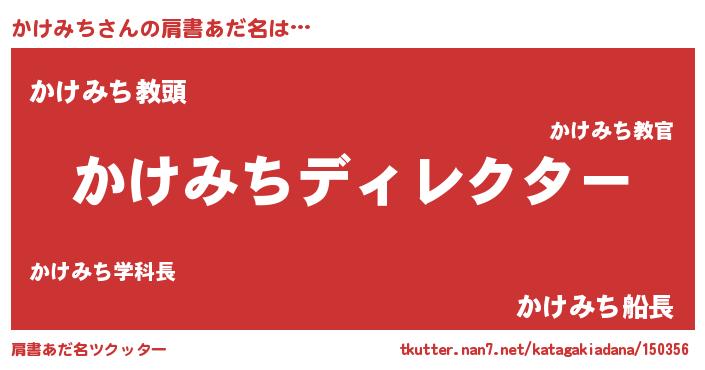 | ヒーロー風カッコイイあだ名 | 『ネオカケミチ』『仮面カケダー』 |