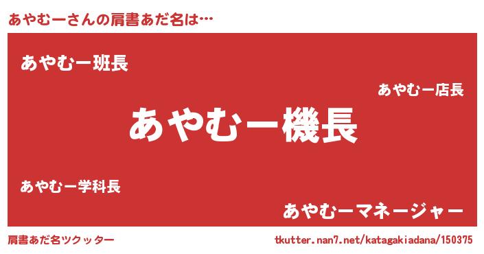 | 意味不明あだ名 | 『とにかく怪しいあやむー』 |