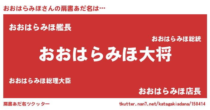 | 胡散臭い通販商品みたいなあだ名 | 『億万長者になれる霊験あらたかなお札…その名も「おおはらみほ」』 |