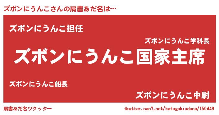 | ファンタジー風あだ名 | 『エターナルズボンニウンコー』 |