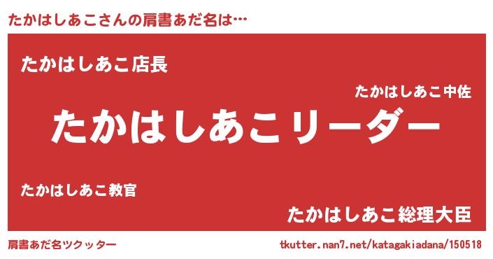| 女子向けラノベタイトル風あだ名 | 『たかはしあこは平凡を望む』 |