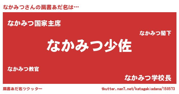| 男性向けラノベタイトル風あだ名 | 『ナカミツスレイヤー』 |