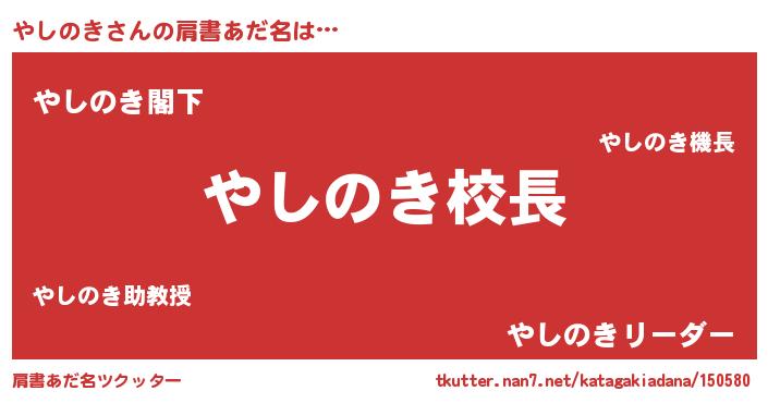 | 意味不明あだ名 | 『永久保存やしのき』『自称やしのき』 |