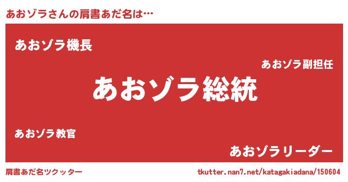 | 男性向けラノベタイトル風あだ名 | 『Re:あおゾラから始める異世界生活』 |