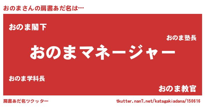 | ヒーロー風カッコイイあだ名 | 『超時空戦士オノマ』『仮面オノダー』 |