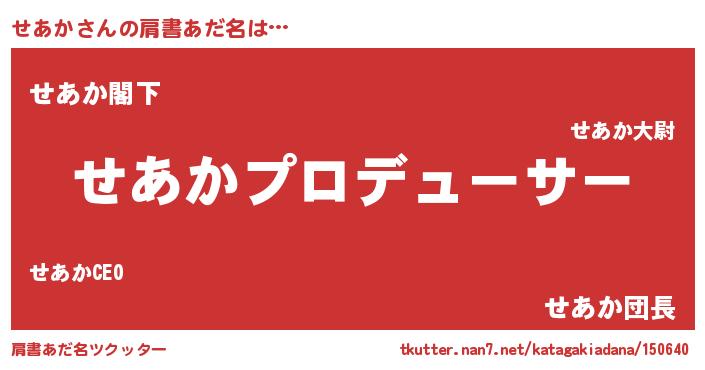 | 男性向けラノベタイトル風あだ名 | 『はたらくせあかさま!』『せあかの憂鬱』 |