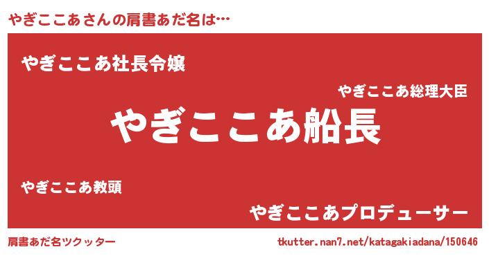 | 胡散臭い通販商品みたいなあだ名 | 『億万長者になれるブレスレット…その名も「やぎここあ」』 |