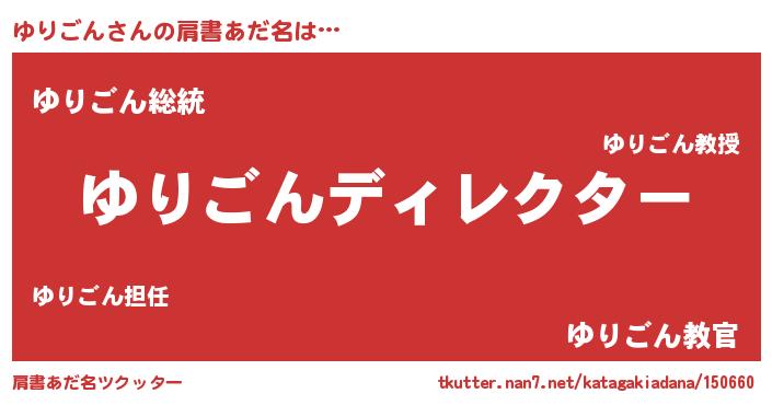 | 意味不明あだ名 | 『自称ゆりごん』『永久保存ゆりごん』 |