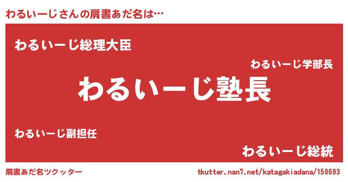 | 意味不明あだ名 | 『とにかく怪しいわるいーじ』 |