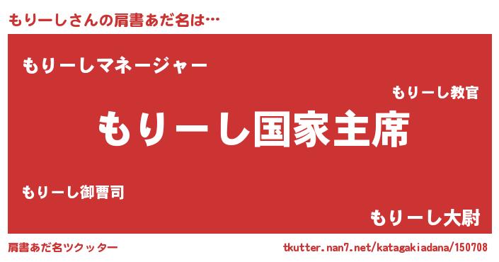 | ヒーロー風カッコイイあだ名 | 『ウルトラもりーしマン』『仮面モリダー』 |