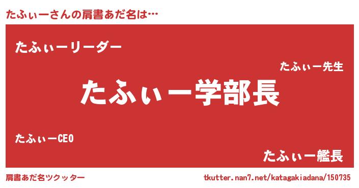 | ヘコむあだ名 | 『たふぷりん』『たふぃー(震え声)』 |